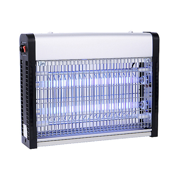 Высокое напряжение, достаточное для поражения насекомых, подведено к металлическим решеткам в основе конструкции. Корпус выполнен из окрашенного металла. В комплект поставки входит цепь для подвешивания.