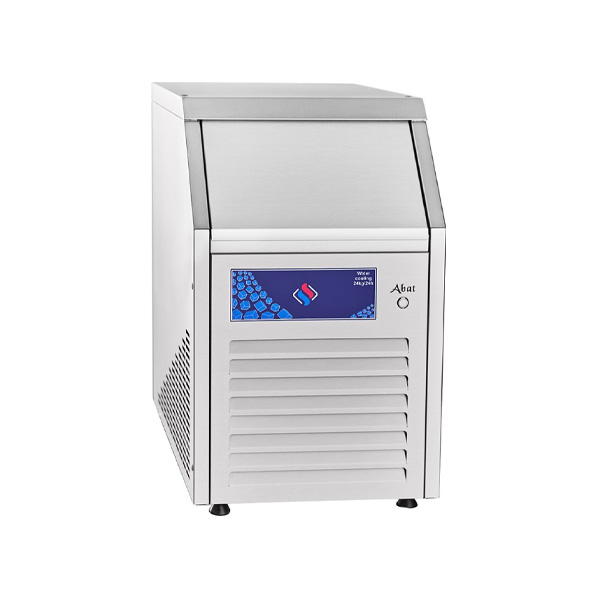 Модель оснащена отодвигающейся вовнутрь дверцей, системой автоматического отключения в случае отсутствия подачи воды на охлаждение конденсатора, утечки хладагента, повышенной нагрузки на мотор-редуктор и переполнения бункера льдом и регулируемыми по высоте ножками.