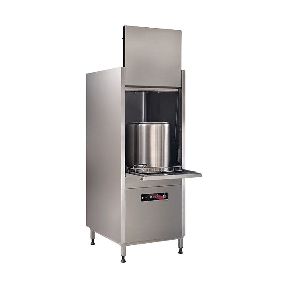 Модель оснащена помпами ополаскивания и слива, электромеханической панелью управления, сдвижной вертикальной и откидной горизонтальной дверьми с интегрированными рукоятками. Корпус, сварной моечный бак, моечные рукава и кассета выполнены из высококачественной нержавеющей стали.