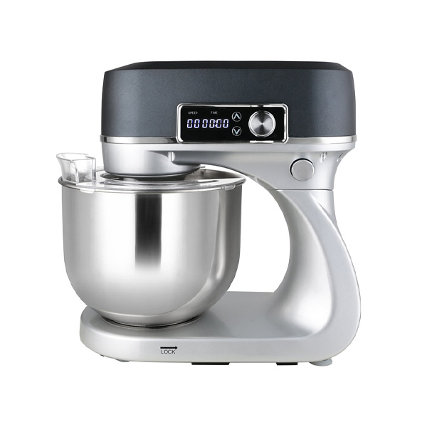 Модель оснащена дисплеем и съемной дежой. Корпус выполнен из алюминия, дежа – из нержавеющей стали. В комплект поставки входят крюк, венчик и лопатка.