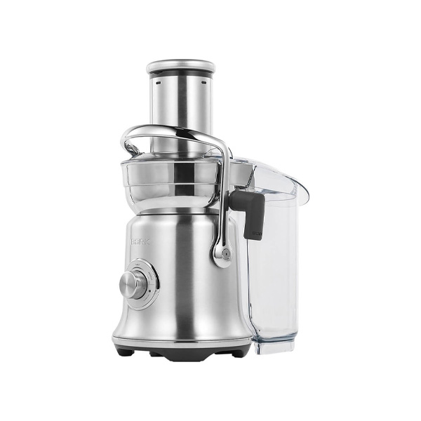 В комплект поставки входят кувшин для сока с удобной крышкой, съемный контейнер для жмыха, толкатель, мелкоячеистый фильтр, насадка для отжима в стакан и щетка для чистки фильтра.