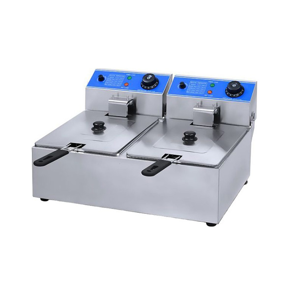 Модель оснащена электромеханической системой управления и регулировкой температуры. Корпус выполнен из нержавеющей стали. В комплект поставки входят 2 корзины с крышками.