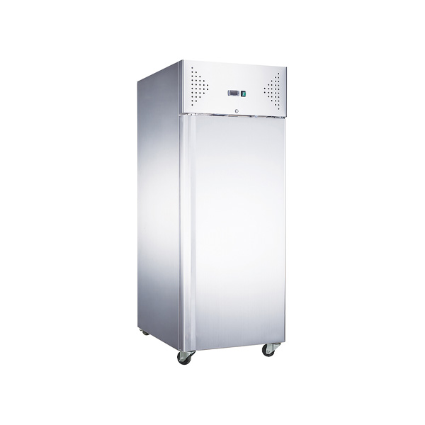 Модель оснащена регулируемыми по высоте ножками, глухая перевешиваемая дверь. Корпус и камера выполнены из нержавеющей стали, теплоизоляция – из пенополиуретана.