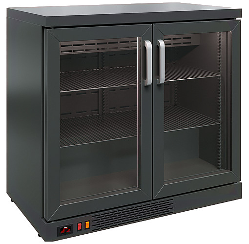 Модель подходит как для использования в качестве традиционного холодильного стола с объемом хранения охлажденных продуктов и полноценной столешницей, так и для встраивания в барные стойки, пристенные модули, под общую столешницу, в ниши и в элементы мебельных конструкций. Обшивка корпуса и рама дверей выполнены из алюминия черного цвета. Оборудование рассчитано на работу при температуре окружающей среды до 32 °С.